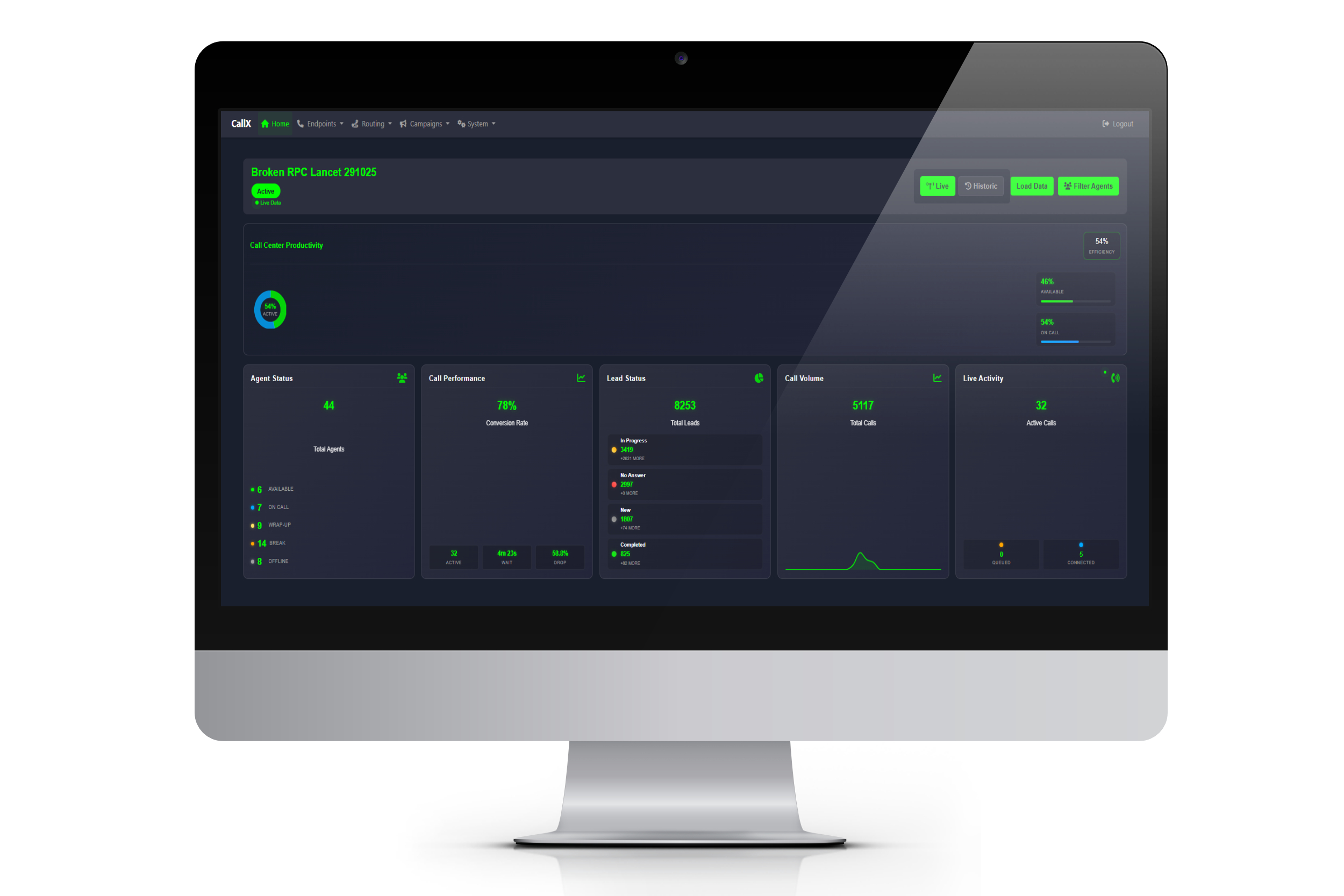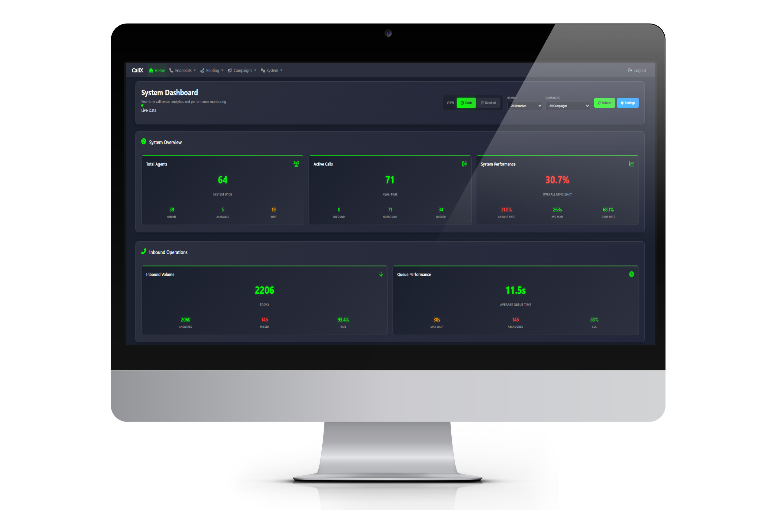 - Real-time agent and call monitoring dashboard